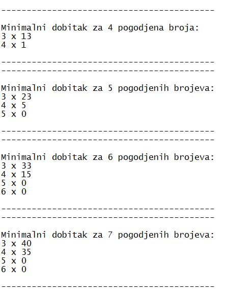 Puni loto sistem, 19 brojeva, garancija 7 od 7, ima 50388 kombinacija.